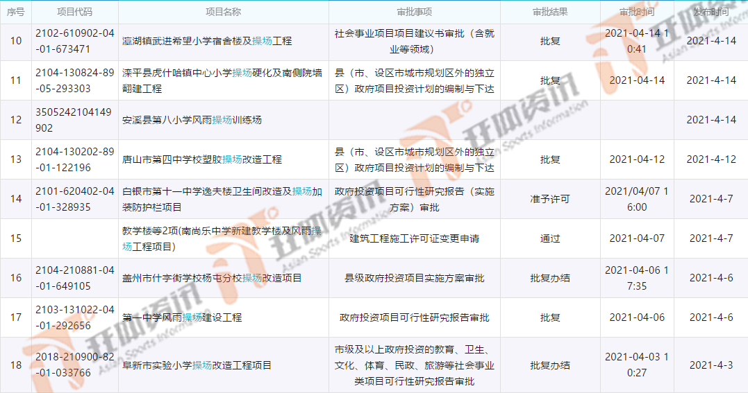 【擬建項目更新】2021年4月份超全的全國運動場、球場、操場、跑道等擬建項目匯總